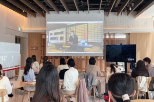 授業のプログラムは、学生がリアルとデジタルの地域活性化の取り組みを体感し、自ら地域活性化のアイデアを考えることで、地域活性化という社会課題を自分ごととして捉えてもらう構成としました。具体的には、三菱地所株式会社が日本全国の地域と連携し、地域の魅力を発信している「TOKYO TORCH」(https://tokyotorch.mec.co.jp/)視察ツアーと、ものづくりのまち新潟燕三条の株式会社MGNET(https://mgnet-office.com/)協力の下、双方向クラウド中継システムを活用し、高精細映像で、現地の銅器メーカー「玉川堂」(https://www.gyokusendo.com/)のリモート工場見学を実施した後、この体験を通じて地方活性化に関するグループディカッションを行いました。