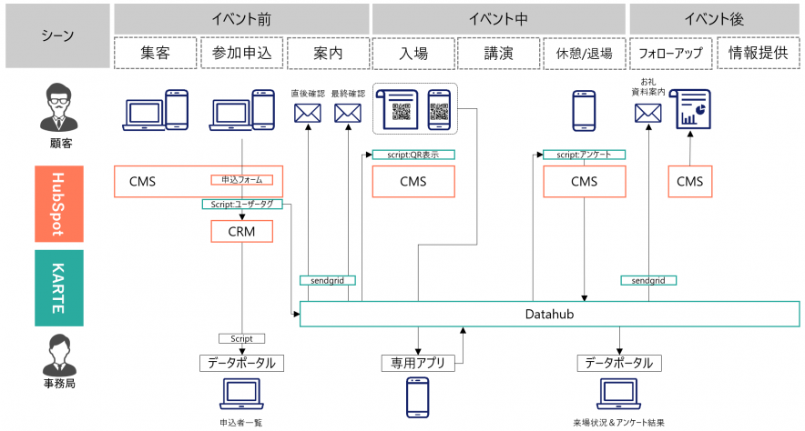 - SendGrid(KARTE 経由):参加登録確認メール、案内メールの送信