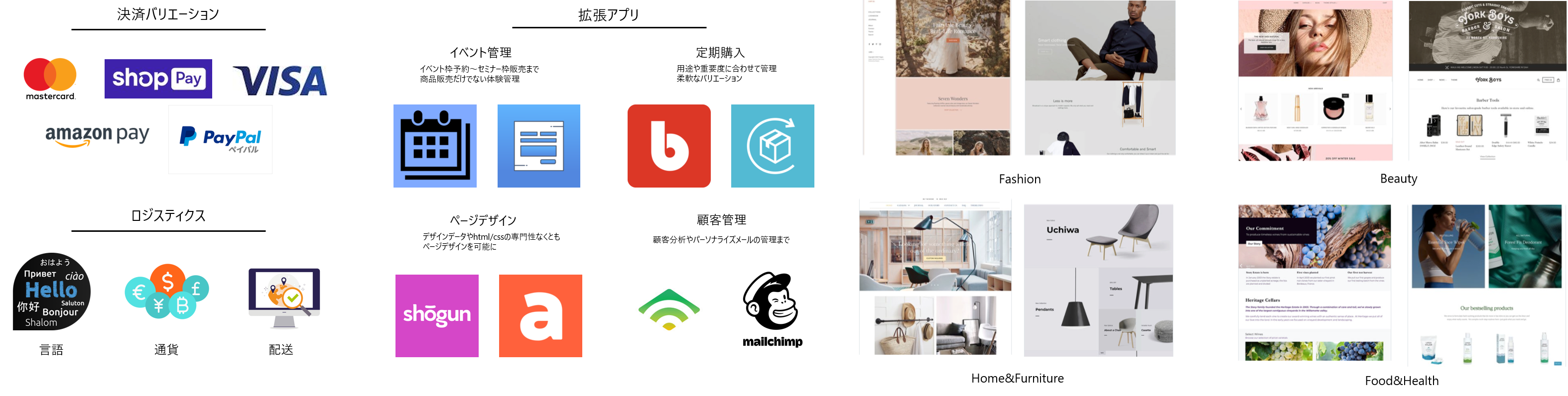 Shopify だけで EC ショップをはじめられ、ビジネスが拡大した後も使い続けることができる