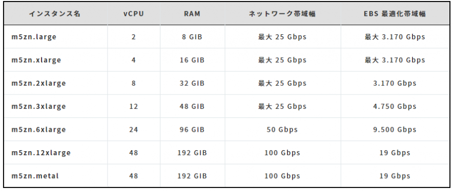 64-bit ARM アーキテクチャを採用しており、LinuxOSの大半をサポートしているAWS Graviton2 プロセッサを搭載しており、またNitroSystem上で稼働するため、常時オン状態の 256-bit DRAM 暗号化機能等豊富なセキュリティ機能がサポートされています。 C6Gnインスタンスはネットワーク最適化に特化し、同世代のx86 ベースのネットワーク最適化インスタンス よりも最大40%高いコストパフォーマンスを出せるようです。 また、既存のC6Gと比較し、4倍のネットワーク帯域幅と 2 倍の EBS 帯域幅を提供し、 4 倍のパケット処理パフォーマンスを実現できる旨が発表されていました。 選択可能なインスタンスタイプは8つです。 ・利用可能リージョン(2020年12月10日現在):エリア:米国西部 (オレゴン)、アジアパシフィック (東京)、米国東部 (バージニア北部)、米国東部 (オハイオ)、アジアパシフィック (シンガポール)、および欧州 (フランクフルト) ・参考:Coming Soon – EC2 C6gn Instances – 100 Gbps Networking with AWS Graviton2 ProcessorsR5b