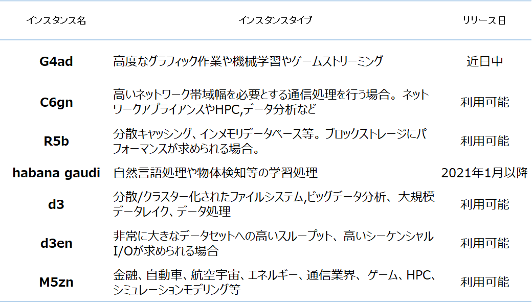 表はAWS re:Invent 2020 blog よりNRIデジタルにて作成
