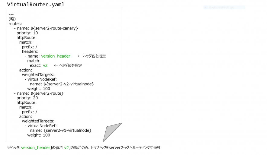 ヘッダーの値によりトラフィックをルーティングするサービスを制御する機能です。