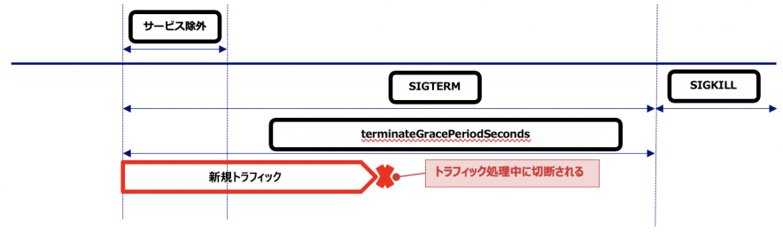 k8sの仕様として、PodのRollingUpdate時や再起動時にはコンテナに対してSIGTERMシグナルが送信され、仮にPodがトラフィック処理中であっても終了してしまいます。