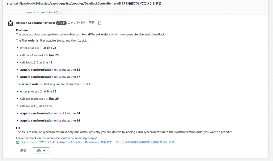 その為、非効率なインスタンス生成に対する指摘や、並列化すると処理性能が改善するような観点で提案をしてくれるようで、今回実施したバグのような類はReviewerで検知すべきという方針とのようです。