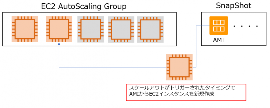 このような場合は一度起動してから停止状態でWarmPoolに待機することで、初回起動時の処理を省略してスケールアウトすることが可能となります。