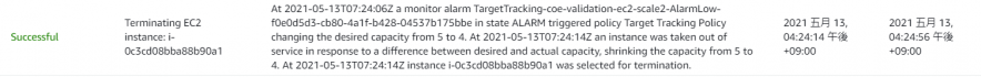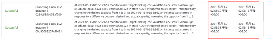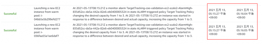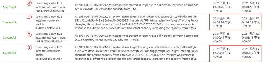 Running(起動状態)のインスタンスを取得している為、スケーリング時間もかなり短く実行できました。