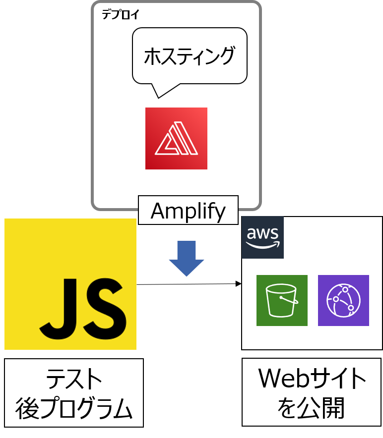 開発・テストを行い品質確保したプログラムをビルドして Web サイトにデプロイします。実体としては index.html ファイルと数個の JavaScript ファイルになります。これらを S3 / Cloudfront などのホスティングサーバーに配置すると Web 公開されます。AWS の Amplify を利用してホスティングすると良いでしょう。