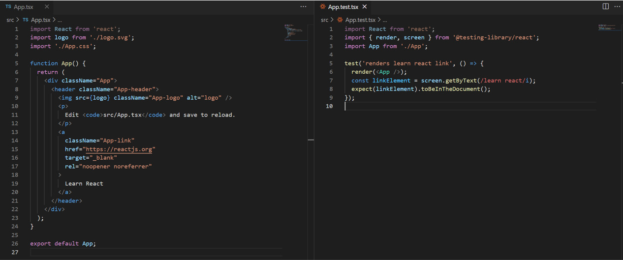 Learn React というリンクを表示する関数コンポーネントをテストする RTL テストコードサンプル