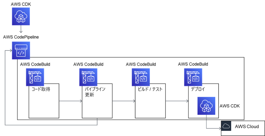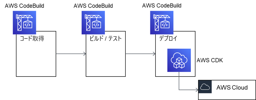 こういった理由もあり、従来の、CDKとしてコマンドラインで実行できる形で定義した上で、 CodeBuild 内でコマンドを叩くという方式を採用しています。