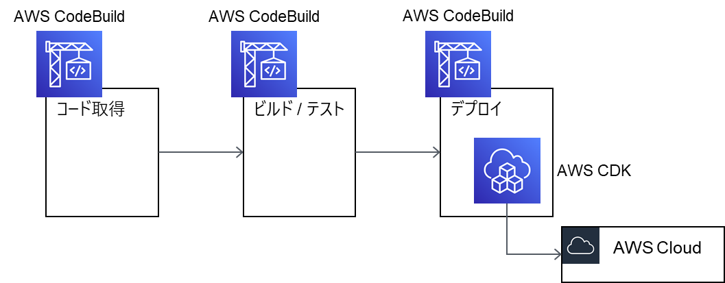 こういった理由もあり、従来の、CDKとしてコマンドラインで実行できる形で定義した上で、 CodeBuild 内でコマンドを叩くという方式を採用しています。
