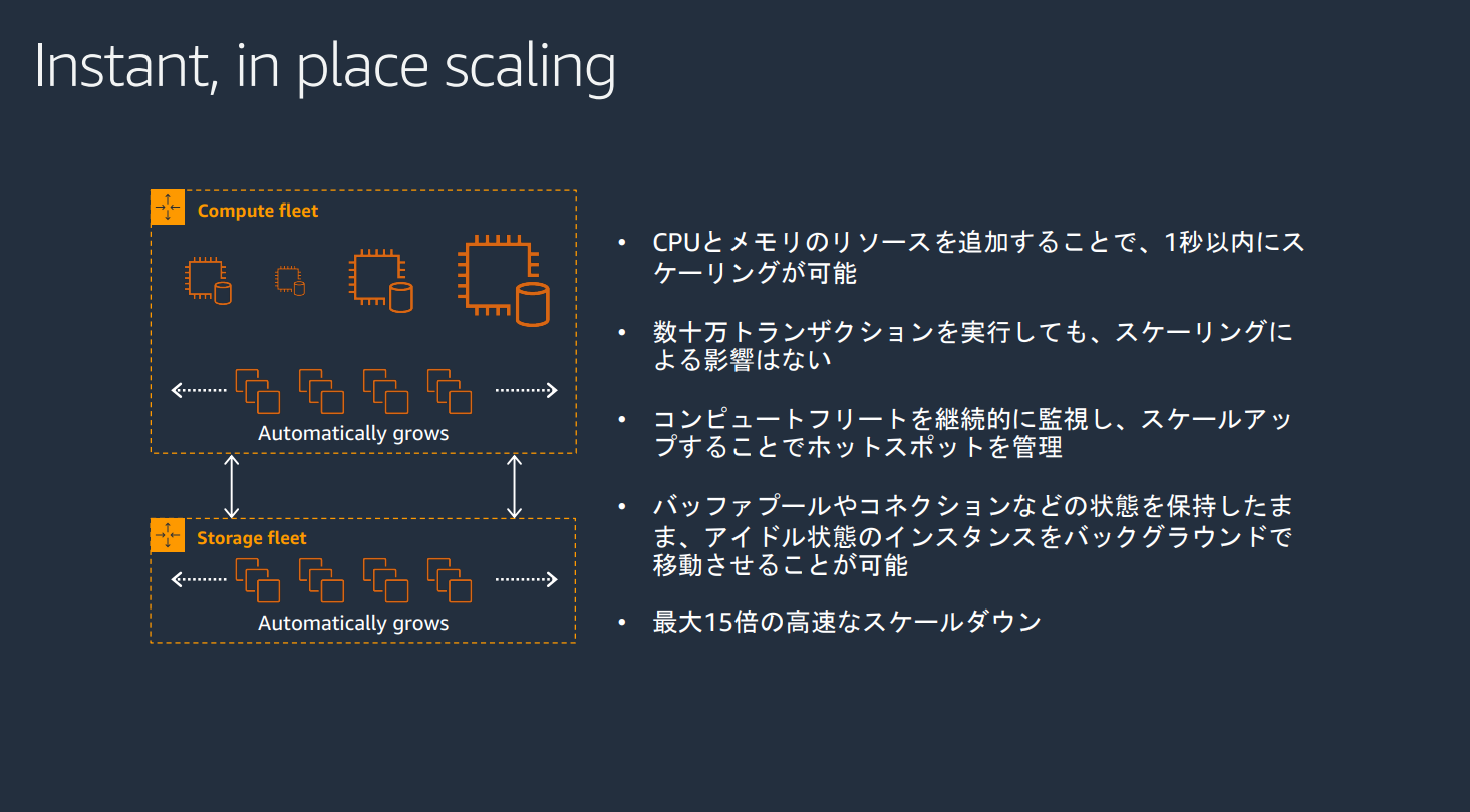 このアーキテクチャへの変更により、0.5ACU単位のきめ細かい単位での増減をミリ秒単位で実現することが可能です。