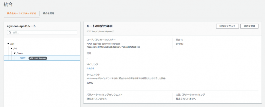 integrationURI: arn:aws:elasticloadbalancing:ap-northeast-1:XXXXXXXXXXXX:listener/app/k8s-coesyste-coeresta-7aca3ea431/f436e085bb226b51/755ccd3f2fceb1ce ←リスナーARN(※1)
