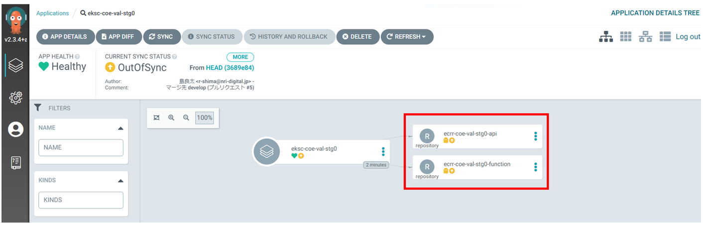 手順は前項のECR等と同様の為、適用したマニフェストと作成された実リソースのみ掲載します。