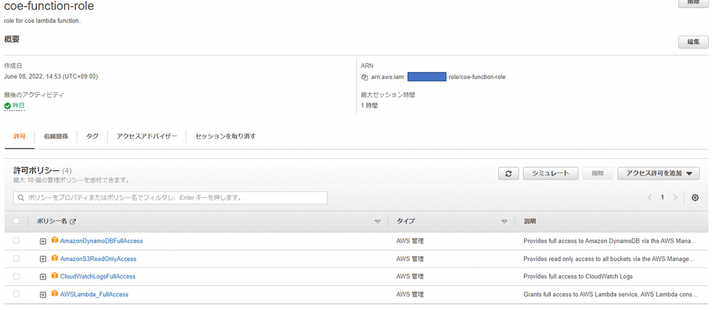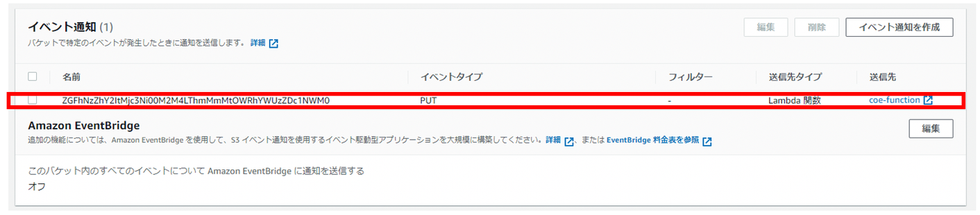 lambdaFunctionARN: arn:aws:lambda:ap-northeast-1:XXXXXXXXXXXX:function:coe-function ←前項で作成したLambda関数名