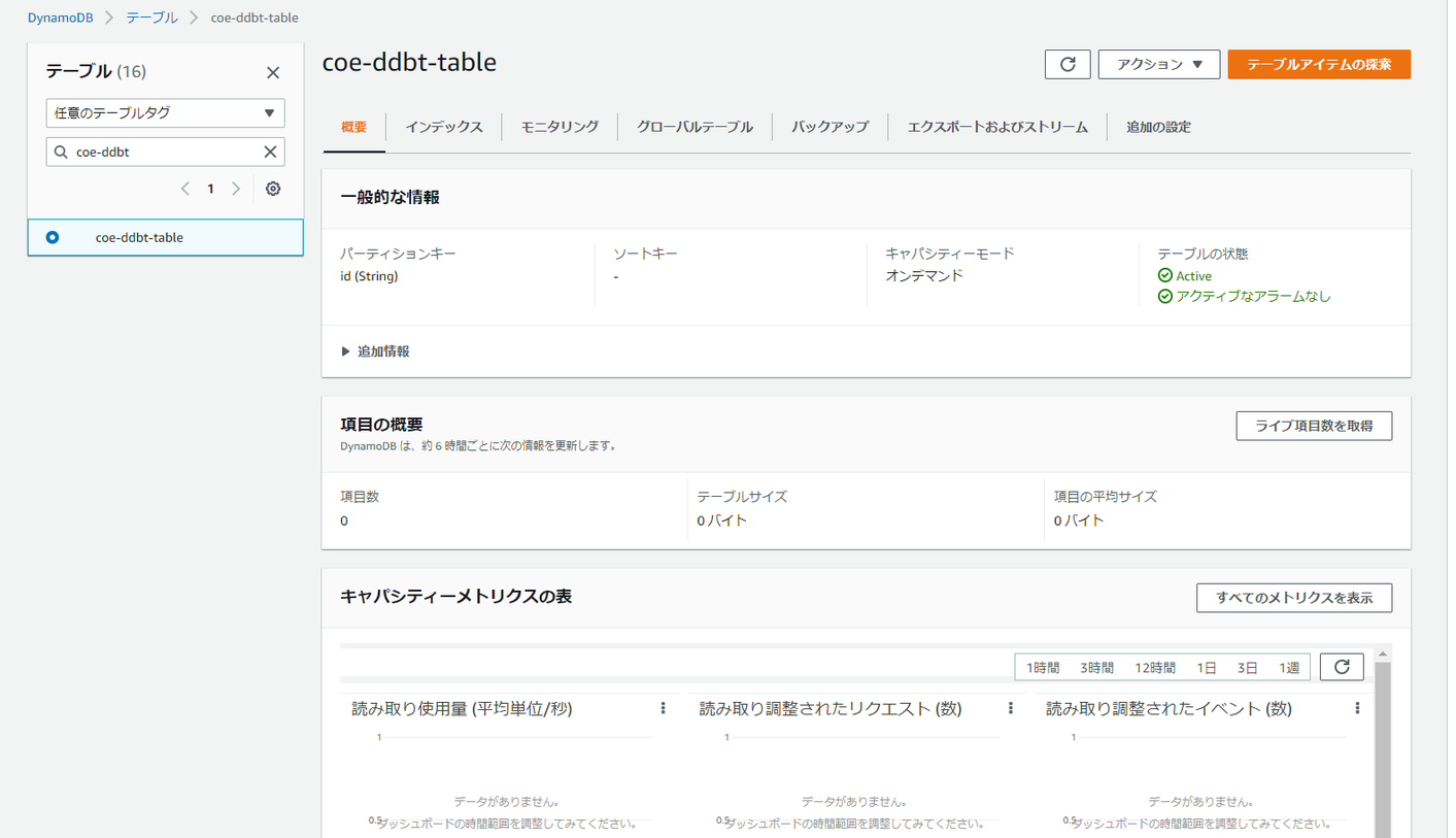 また、作成したDynamoDBのテーブルにJSONデータが正常に登録されました。