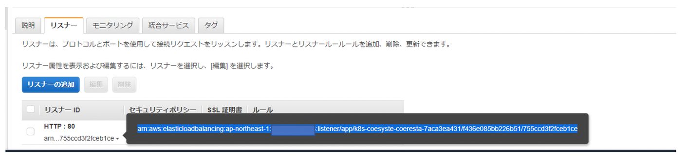 integrationURI: arn:aws:elasticloadbalancing:ap-northeast-1:XXXXXXXXXXXX:listener/app/k8s-coesyste-coeresta-7aca3ea431/f436e085bb226b51/755ccd3f2fceb1ce ←リスナーARN(※1)