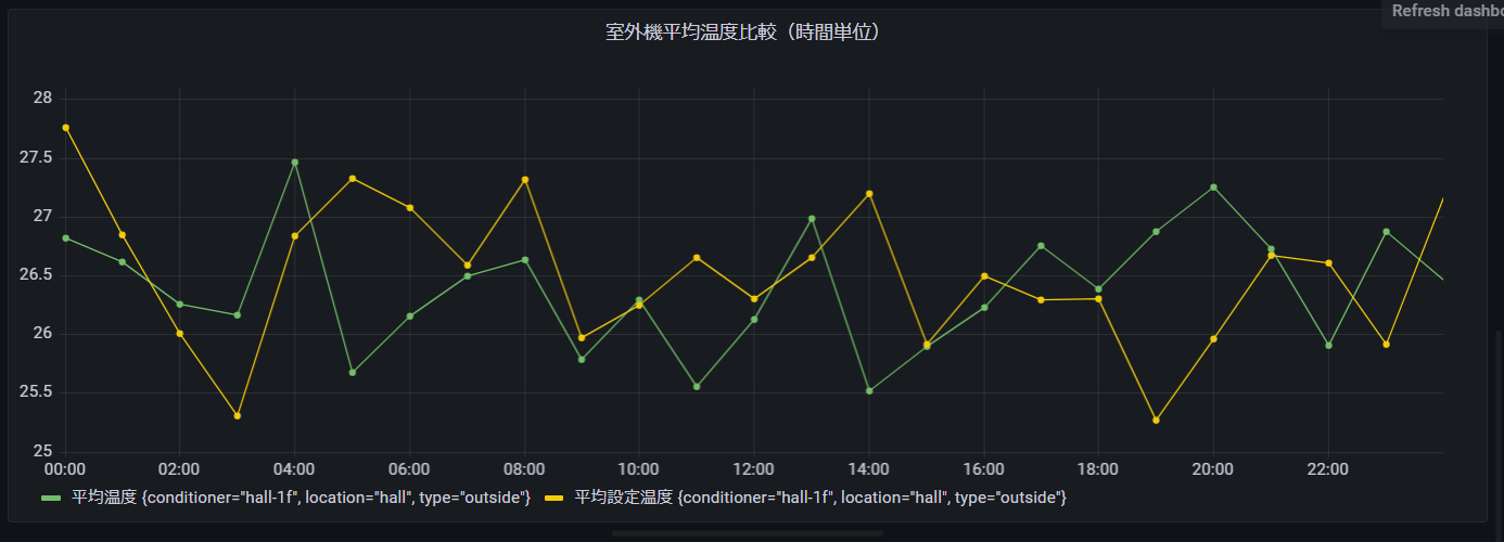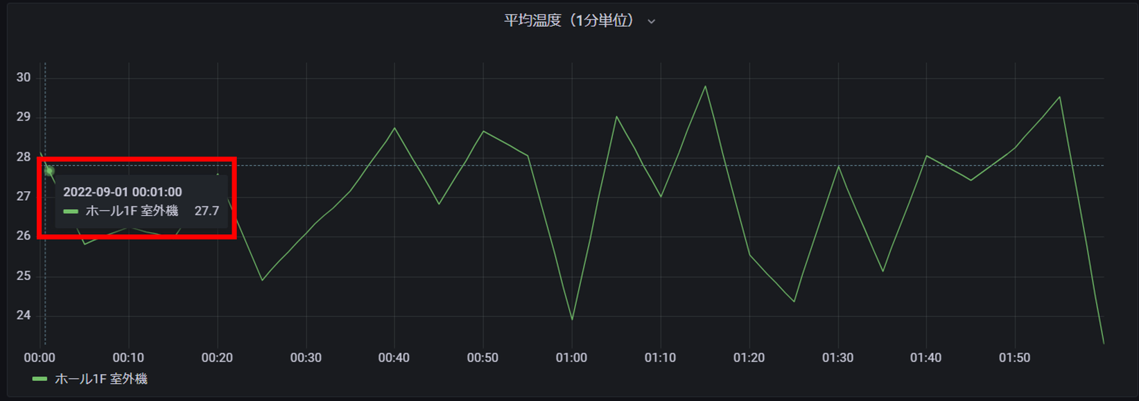 補間関数の「線形補間」を利用して、空調(エアコン)の平均温度を1分単位で表示させてみます。