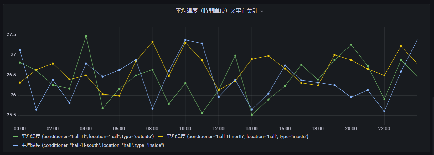 上記の通り、5分間隔のデータにも関わらず、補間関数により1分単位のデータポイントで集計・表示することが可能です。