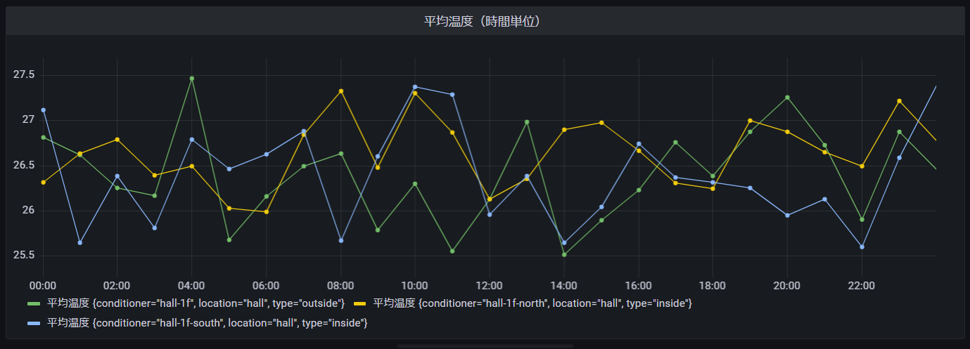 結果は先で可視化した「平均温度(時間単位)」と同様になることが確認できます。