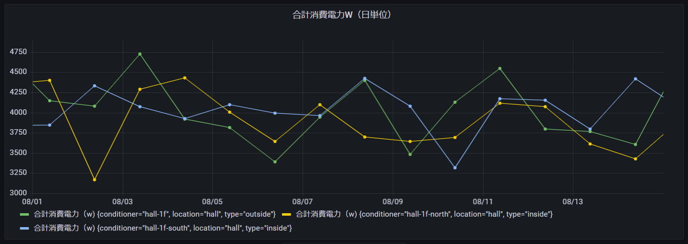 例えば、消費電力合計を週単位や月単位で集計したい場合、筆者の知る限りそれらの単位で集計する関数は用意されていません。(最大が日単位での集計)
