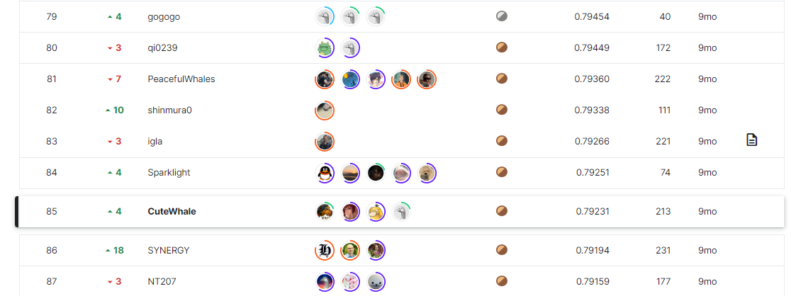 私たちのチームの最終順位は1589チーム中85位で、銅メダルでした。79位までが銀メダル圏内だったのであと少しで届かなかったことが悔やまれますが、Kaggle部としての初参加のコンペティションでメダルを獲得できて良かったです。