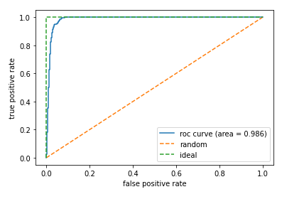 また、定量的には、TPR(全ての Positive のうち、実際に Positive だったものを正しく Positive と判定できた割合)を縦軸、FPR(全ての Negative のうち、実際には Negative だったが間違えて Positive と判定した割合)を横軸に取り、Positive-Negative判定の閾値を0~1で動かした際の曲線下の面積で表せます。