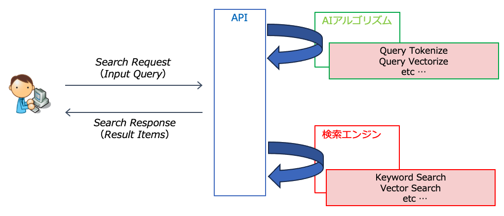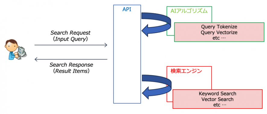 をAWSクラウド上で開発中です。この検索システムはルールベースのみではなく、AI技術を活用した「意味的な検索(文脈の自動解釈)」