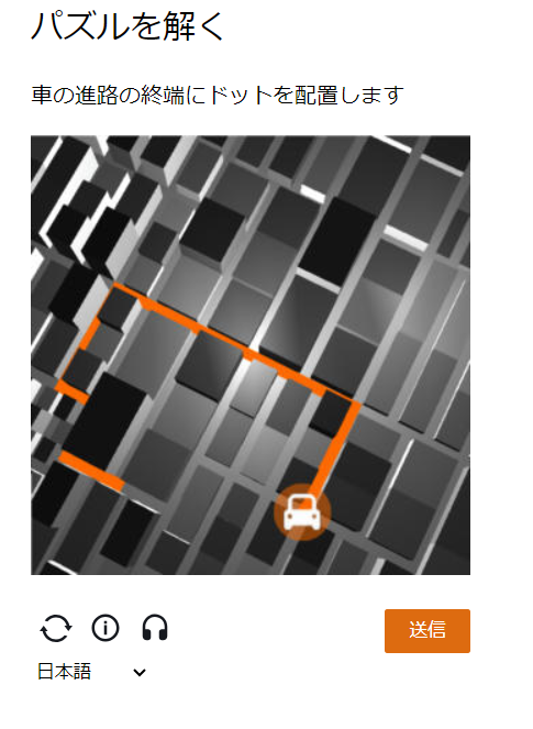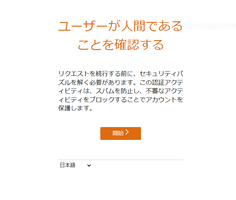 「開始」ボタンを押下すると、デフォルトで用意されているキャプチャ認証画面に遷移します。何パターンかあるようですが、今回は図形パズル画面に遷移しました。