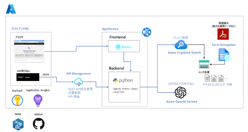 Azure-Samplesのazure-search-openai-demoは日本のMicrosoftの方々が派生版を作って公開されているものもあります。