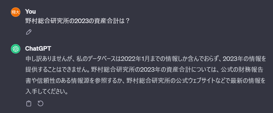 ※ 現在GPT-4では、Bingによるウェブブラウジング機能が標準搭載されているので、本データを踏まえた応答は可能であるが、実験では本データを独自データとして実装している。