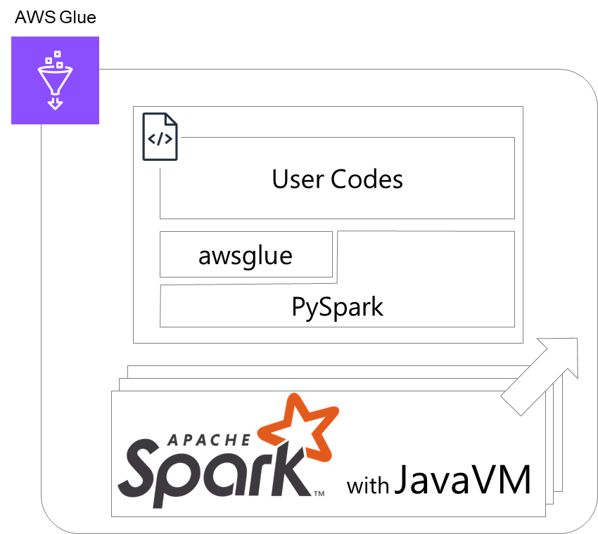 awsglueライブラリが提供されます。利用者はこの上で実現したい処理を記述します。