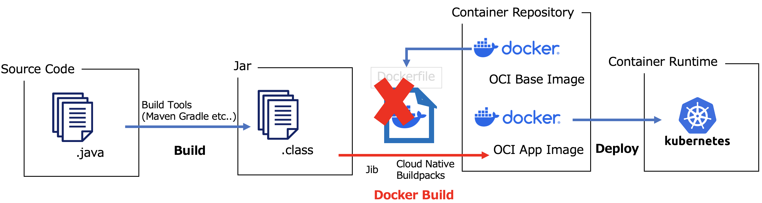 Production Readyなコンテナイメージには上記に挙げたような事項を考慮したDockerfileが必要であり、これを作成、メンテナンスしていくには高いスキルセットが必要ですし、相当な労力と工数もかかってきます。これらを解消するソリューションとして期待しているのが、「Cloud Native Buildpacks」や「Jib」といったツールです。