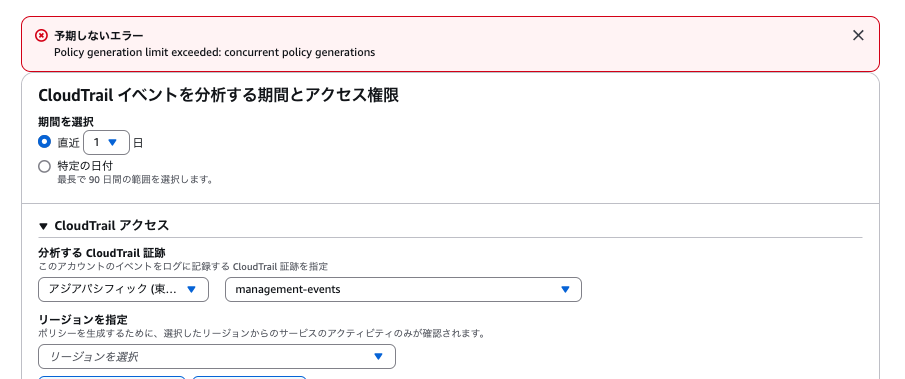 本ポリシー生成機能は、同一アカウント内で並列で複数同時実行できませんので注意してください。
