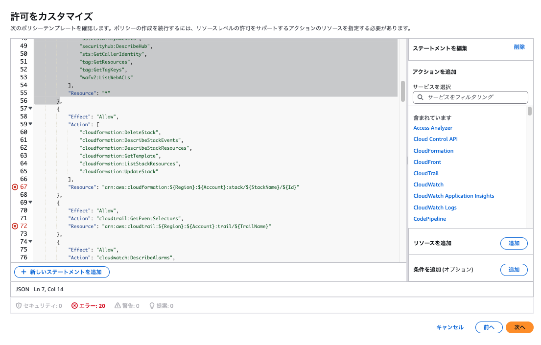 本ポリシー生成機能は、同一アカウント内で並列で複数同時実行できませんので注意してください。