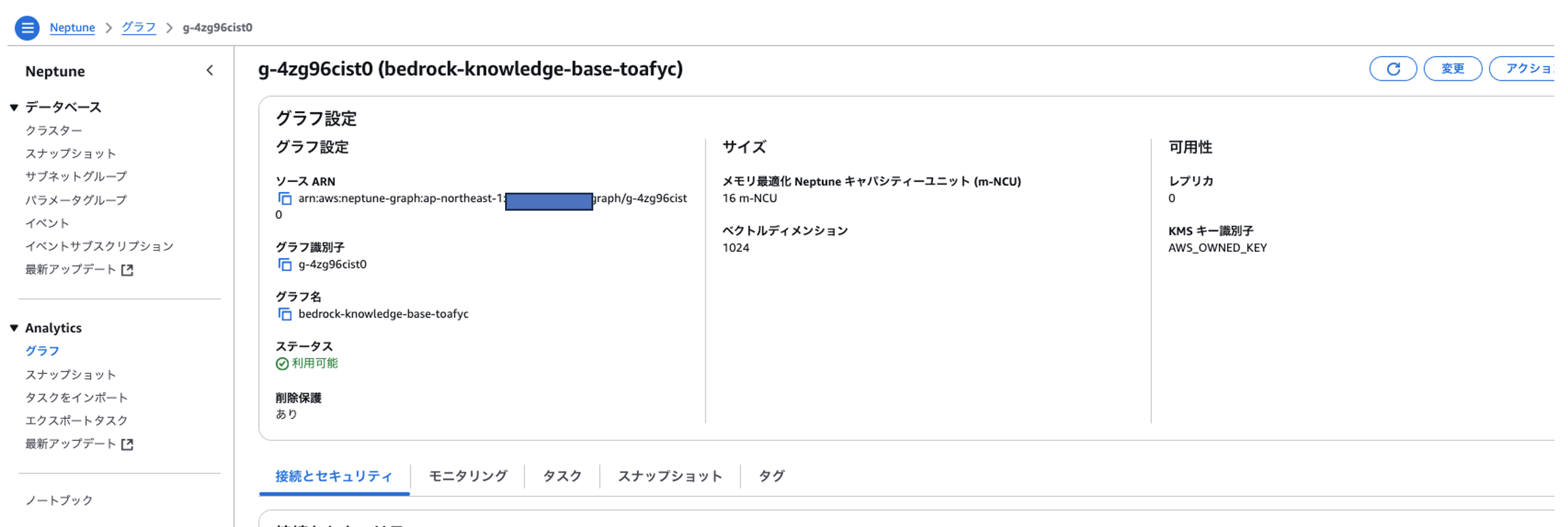 ナレッジベースを作成すると「Neptune Analytics」のグラフが起動されます。