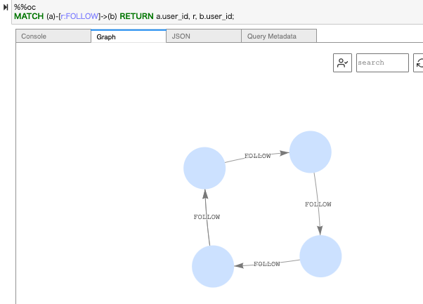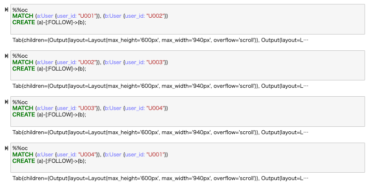まだエッジ(関連性)を登録してないので、ノードのみの表示です。次にエッジ(関連性)も登録してみます。