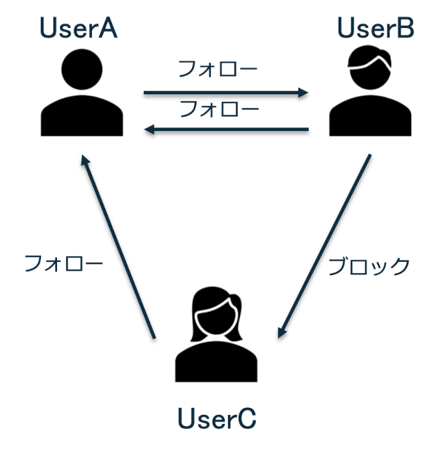 | U001 | フォロー | U002 |