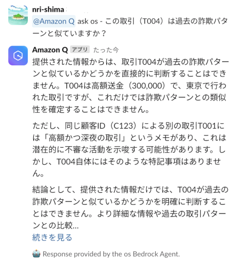さいごに、(おまけではありますが、)Slackを通して各エージェントと会話できるのかを確認してみたいと思います。