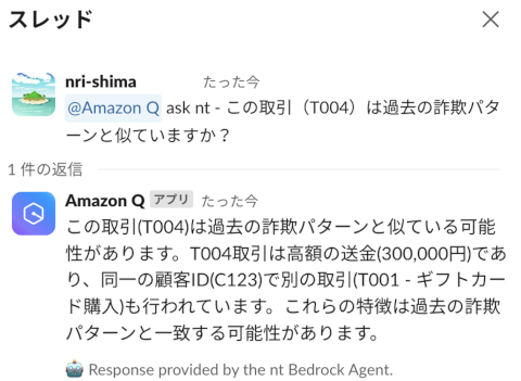 | T001 | C123 | ギフトカード購入 | 50000 | 02:30 AM | 東京 | 高額かつ深夜の取引 |