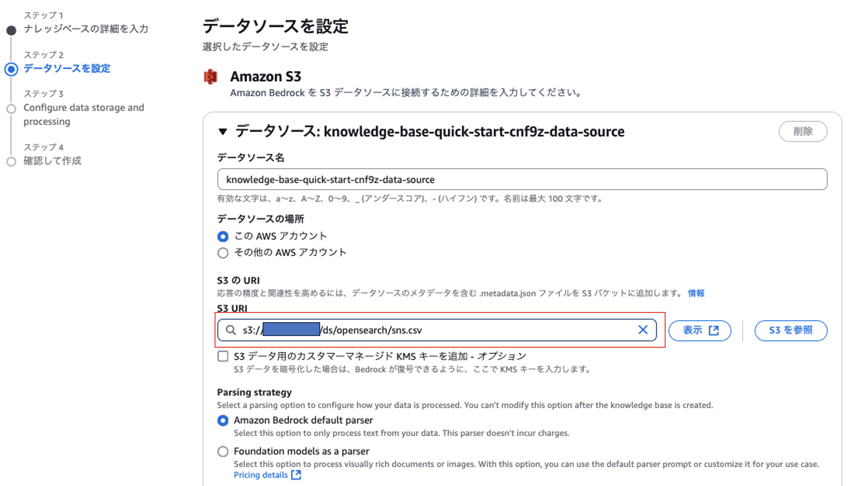 まずベクトル検索RAG(OpenSearch)のナレッジベースを作成していきます。