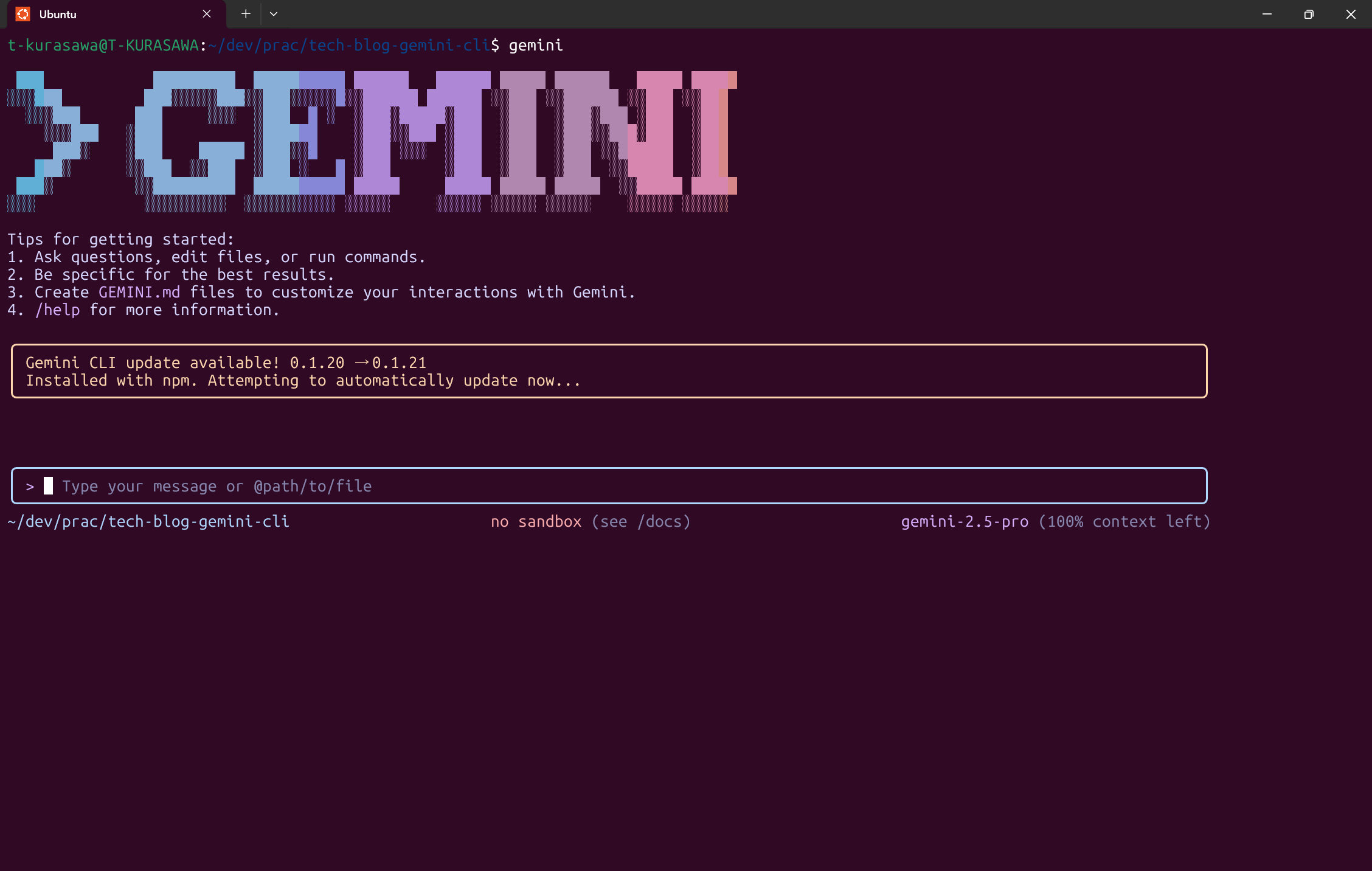 2025年6月25日にGemini CLI が登場しました。Gemini CLI はコマンドラインで起動し、ローカルにあるコードを理解し、様々なタスクを実行することができます。本稿ではその中でも、筆者が業務で取り扱っているフロントアプリケーション開発を題材として利用例を見ていきます。