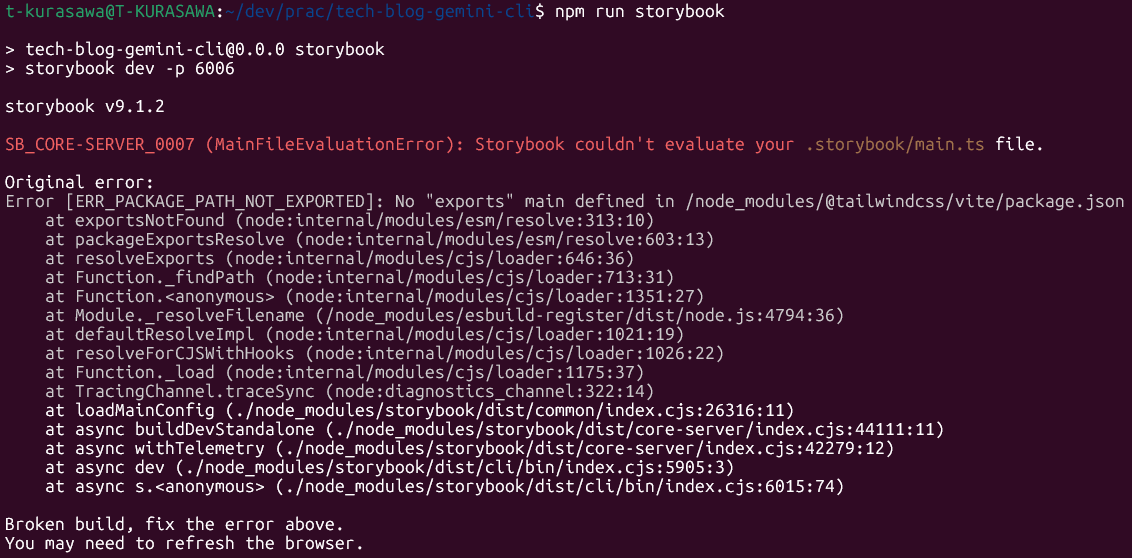 Gemini が開発するコードは頻繁にエラーを出します。「作業が終わりました」と Gemini が言うのでアプリを触ってみるとエラーが出ていて起動すらしない・・・ということが普通に発生します。